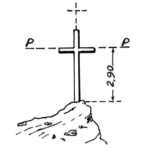 | Materializzazione | Croce in ferro sul punto più alto del monte. Asse geometrico della croce. |