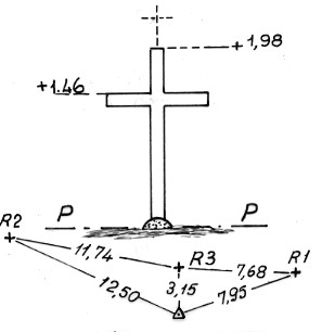 Croce in alluminio sulla sommità del monte ad Est di Fiera di Primiero. Asse geometrico della croce. Riferimenti: 3 croci incise su roccia.
