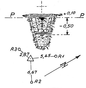 | Materializzazione | Segnale sulla sommità del monte a Nord della ferrovia Feltre-Belluno. Centrini di fondo e di superficie in blocchi di calcestruzzo. Riferimenti:3 centrini metallici. |