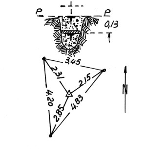 | Materializzazione | Segnale sul cocuzzolo tondeggiante ed erboso del monte omonimo. Centrini di superficie e di fondo. Riferimenti: 3 centrini. |