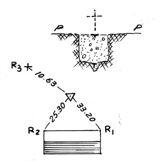 | Materializzazione | Segnale sul dossetto subito a Nord della malga "Montagna Grande". Centrini di superficie e di fondo. Riferimenti: come da pianta: R1, R2 piede degli spigoli della malga, R3 croce incisa su roccia. |