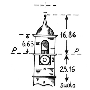 | Materializzazione | Campanile della chiesa parrocchiale. Asse geometrico del campanile. |