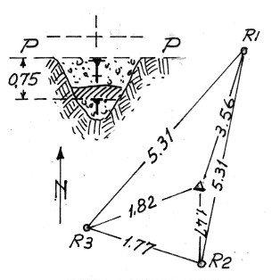 Segnale sulla parte più elevata del monte. Centrini di profondità e di superficie. Riferimenti: tre centrini.