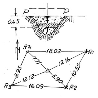 Segnale sulla parte più alta della cresta pianeggiante del monte. Centrini di profondità e di superficie. Riferimenti: due croci incise su roccia (R1, R2) due centrini cementati (R3, R4).
