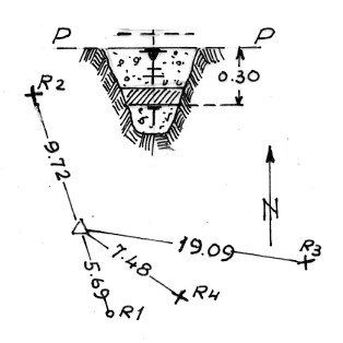 | Materializzazione | Segnale sulla parte più alta della cresta denominata la Rosta situata ad Ovest del Bondone. Centrini di superficie e di profondità cementati in blocchi di calcestruzzo. Riferimenti: tre croci incise su roccia (R2, R3, R4) ed un centrino metallico (R1). |