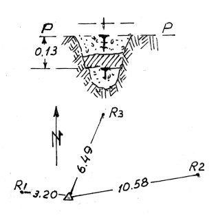 Segnale sul costone. Centrini di profondità e di superficie. Riferimenti: tre centrini cementati.