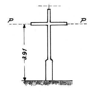 | Materializzazione | Croce in cemento posta a Sud di un colle, che si eleva a Est di Villamontagna. Asse geometrico della croce. |