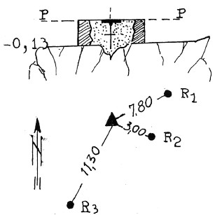 Segnale sul punto di colmo di Creper di Stracciola. Centrino di superficie cementato al centro della più grossa roccia. Riferimenti: Tre centrini metallici cementati in roccia.