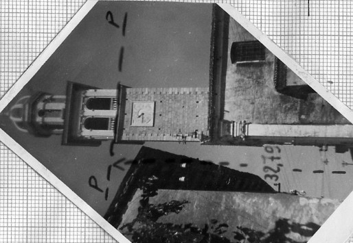 | Materializzazione | Campanile della chiesa parrocchiale. Asse geometrico del campanile materializzato dalla croce alla sommità. |