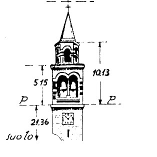| Materializzazione | Campanile della chiesa parrocchiale. Asse geometrico del campanile. |
