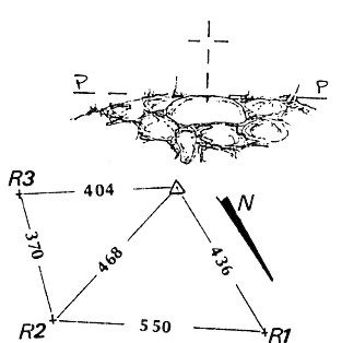 | Materializzazione | Centrino del tipo "GPS C" fissato con collanti su di una pietra poi interrata. Riferimenti:3 croci incise su roccia. |
