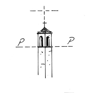 Campanile della chiesa della borgata. Asse geometrico del campanile.