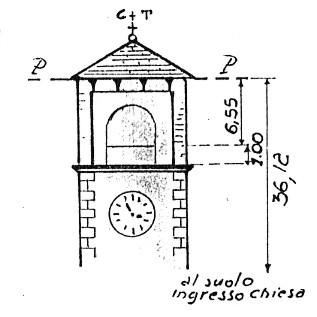 | Materializzazione | Campanile della chiesa parrocchiale. Asse geometrico del campanile. |