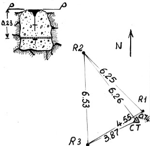 | Materializzazione | Segnale sul monte omonimo a circa m. 425 in direzione Ovest dalla cima più alta. Centrini di fondo e di superficie. Riferimenti: 3 centrini metallici. |