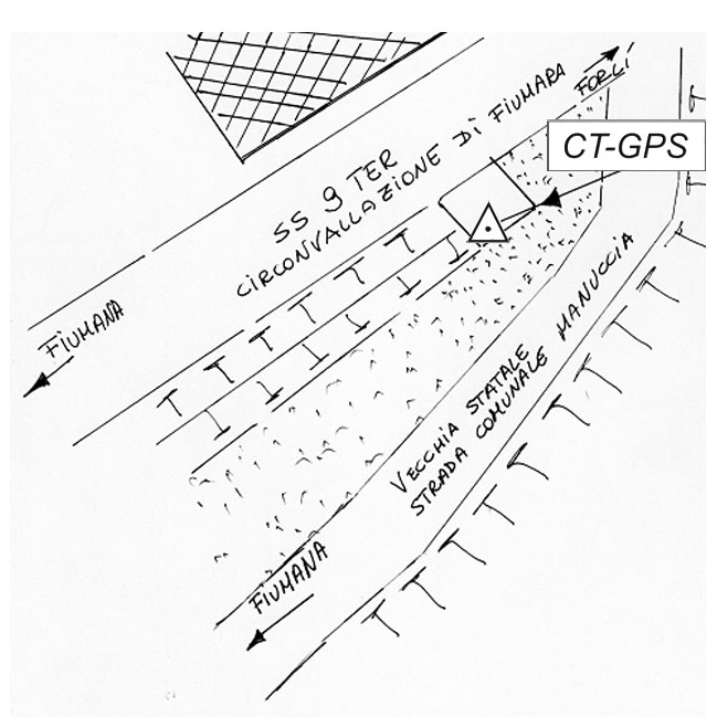 | Materializzazione | Centrino metallico infisso su piattaforma in cemento armato situato fra la vecchia S.S. 9 e la variante del paese S.S. ter. |