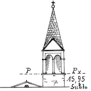 | Materializzazione | Asse geometrico del campanile della chiesa di San Daniele situata sul colle che domina la Frazione di Casteons. |
