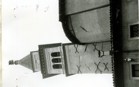 Campanile della chiesa madre di Borgo Pascolle, situata all'estremità Sud del paese. Asse geometrico del campanile.