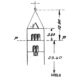 Campanile della chiesa parrocchiale. Asse geometrico del campanile.