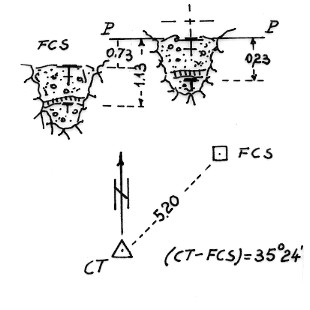 | Materializzazione | Segnale sul cocuzzolo più alto ed a Nord-Ovest della cresta. Centrino di fondo e di superficie in pozzetto di calcestruzzo. Segnalizzazione di fuori centro sussidiario (FCS) in pozzetto di calcestruzzo. |