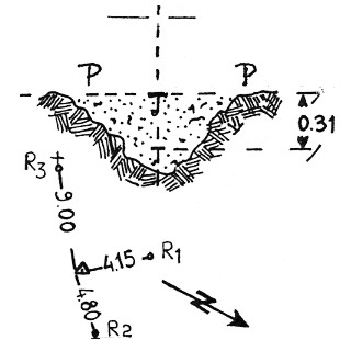 Segnale sul punto più alto del monte omonimo. Centrino di zinco e centrino di ghisa in superficie, coassiali. Riferimenti: R1 e R2 centrini su roccia, R3 croce incisa.