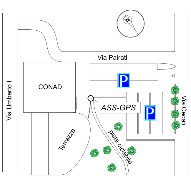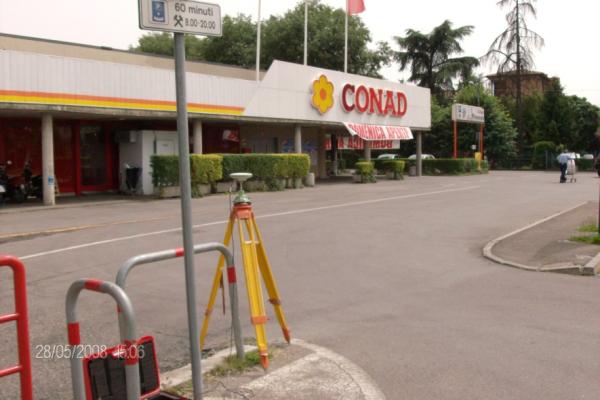 | materializzazione | Centrino in acciaio inox del tipo "GPS D" infisso sull'estremità del muretto delle rampe di accesso del deposito del supermercato, in prossimità della pista ciclabile. |