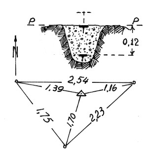 Segnale sulla cima rocciosa che domina a Nord la vallata dell'Auen. Centrini di superficie e di fondo. Riferimenti; 3 centrini.