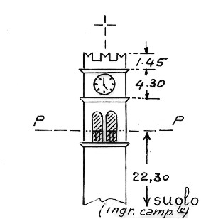 | Materializzazione | Campanile della chiesa parrocchiale. Asse geometrico del campanile. |