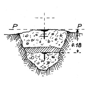 Segnale sul monte, 100 m a Sud del margine cespuglioso costituente la quota più alta. Centrini in vetro di superficie e di fondo.