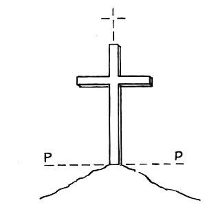 | Materializzazione | Croce situata su una punta rocciosa del versante sinistro del torrente Degano. Asse geometrico della croce. |