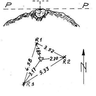| Materializzazione | Segnale sulla parte più elevata del monte. Centrino cementato su roccia. Riferimenti: 3 croci scolpite. |