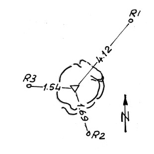 Segnale sulla sommità del monte omonimo. Croce incisa e miniata su roccia viva. Riferimanti: 3 dischi rossi su rocce.