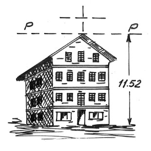 Estremità del colmo tetto, verso la strada, della casa adibita ad albergo (Pensione Lavaredo) situata oltre il ponte sulla strada Ambata-Colmo.
