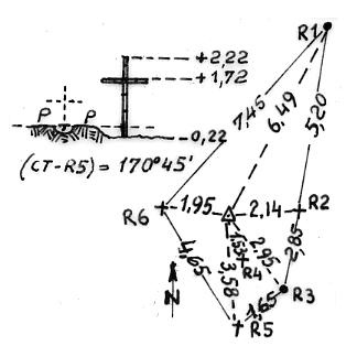 Segnale nel tratto centrale della vetta conformata a mezza-luna, a Nord-Ovest di una croce in ferro. Centrino di fondo cementato nella roccia a livello suolo. Rif. :2 centrini metallici cementati su roccia (R1, R3); 3 frecce dipinte con minio (R2, R4, R6); 1 croce in ferro (R5).