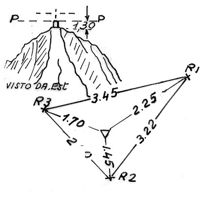 Pilastro più grande esistente sulla cima del monte. Asse geometrico del pilastro. Riferimenti: 3 come pianta.