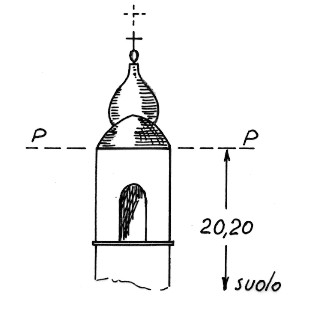 Campanile della chiesetta posta a 500 metri da Pieve di Cadore in direzione di Valle di Cadore. Asse geometrico del campanile.