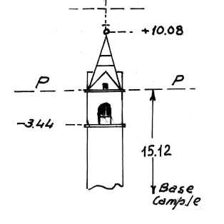 | Materializzazione | Campanile della chiesa parrocchiale. Asse geometrico del campanile materializzato dalla croce terminale. |