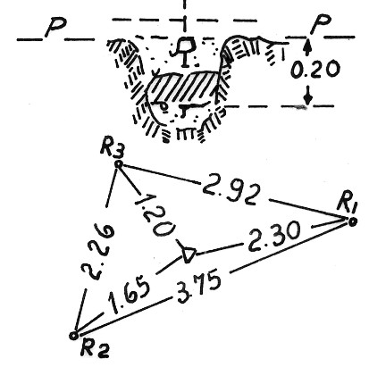 Segnale sulla cima Sud – Est del monte. Centrini di superficie e di fondo. Riferimenti: tre centrini.