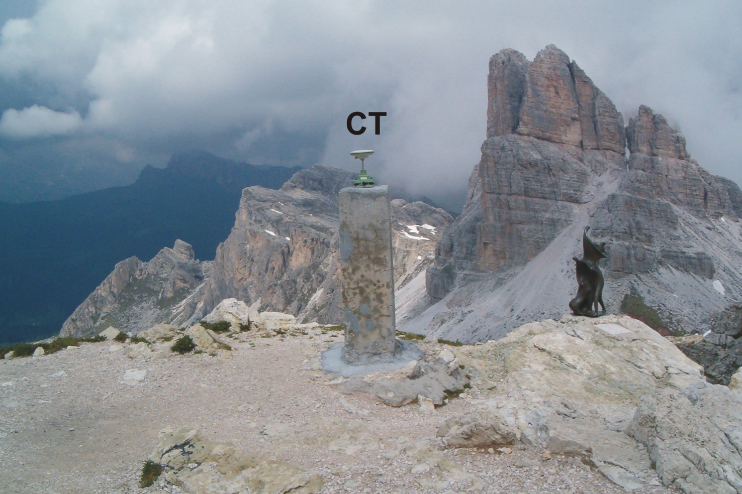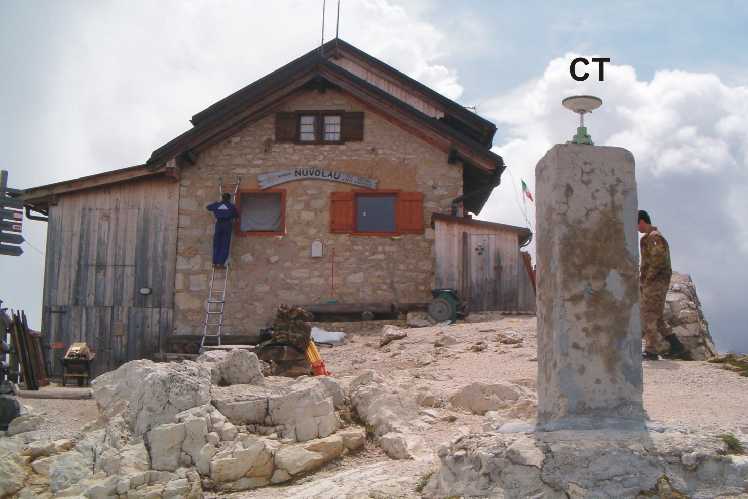 | Materializzazione | Segnale sulla vetta del monte, a Nord-Ovest dal rifugio, costituito da centrini di superficie e di fondo e sovrastante pilastrino in calcestruzzo con centrino fissato sulla sommità. Asse geometrico del pilastrino. Riferimenti: R1 e R2 centrini, R3 e R4 rispettivamente gli spigoli Nord e Ovest del rifugio. |