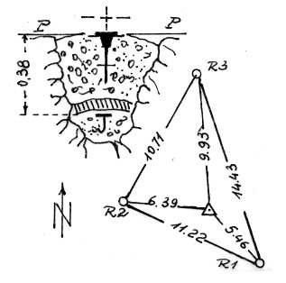 | Materializzazione | Segnale sul punto più alto dell'altura omonima. Centrini di fondo e di superficie cementati in una spaccatura di roccia. Riferimenti: 3 centrini metallici. |