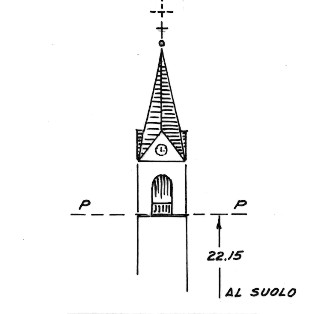 | Materializzazione | Campanile della chiesa parrocchiale di Romeno. Asse geometrico del campanile. |