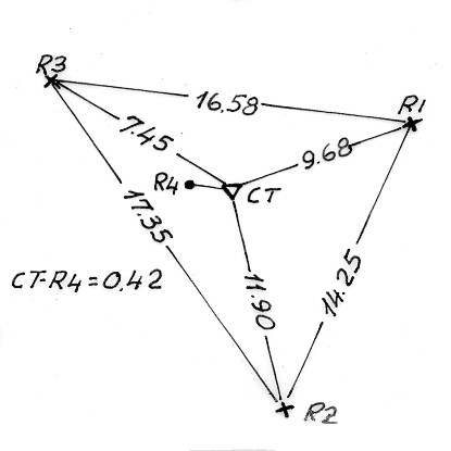 | Materializzazione | Segnale su roccia affiorante. Triangolo inciso e miniato. Riferimenti: 3 croci incise e miniate (R1, R2, R3) palo del telefono (R4). |