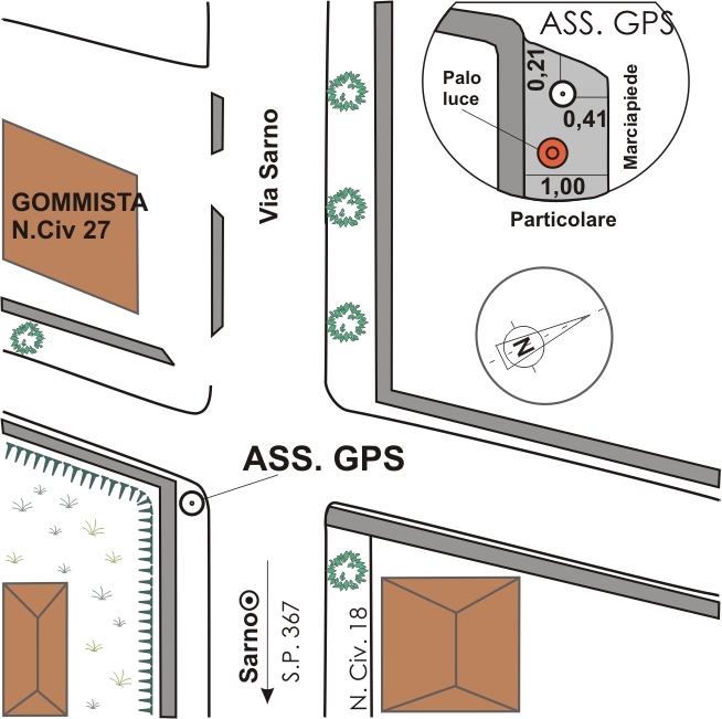 | materializzazione | Centrino di tipo "GPS D" infisso sopra il marciapiede sulla S.P. 367 in prossimità del km 18,250, sulla sinistra direzione Palma Campania, poco prima di una traversa a sinistra accanto ad una Officina-gommista. |
