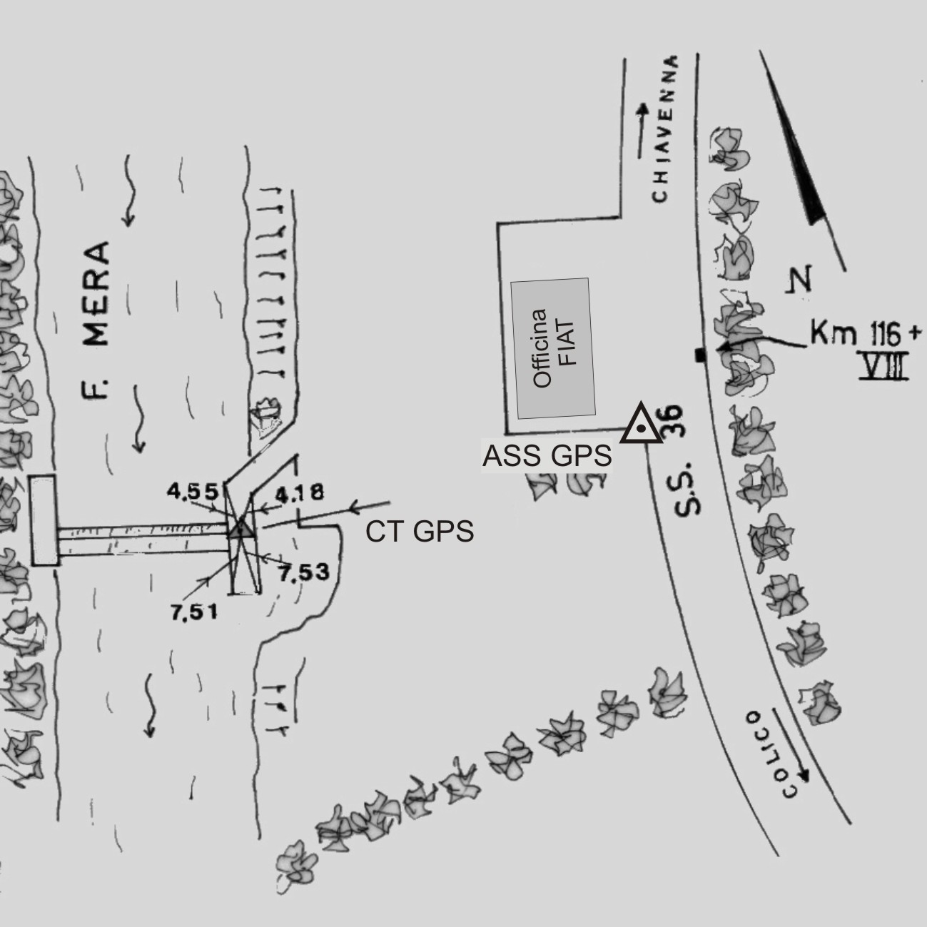 | materializzazione | Centrino in acciaio inox del tipo da livellazione recante la dicitura V40-284 infisso alla sommità del cordolo in cemento armato posto in corrispondenza dello spigolo Sud del posteggio antistante l' officina meccanica, all' altezza del Km. 116,800 della S.S. n° 36. |