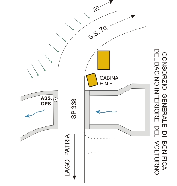 | materializzazione | Centrino di tipo "GPS D" infisso sulla soletta in cemento del ponte nel canale di bonifica che si immette nel Lago Patria. |