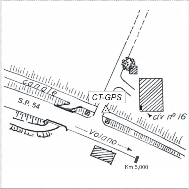 | materializzazione | Centrino in acciaio inox del tipo "GPS" da livellazione, infisso sul parapetto del vecchio ponticello, lato Azienda Agricola. |