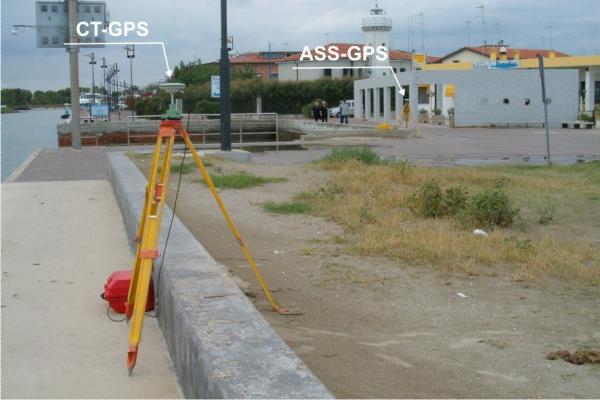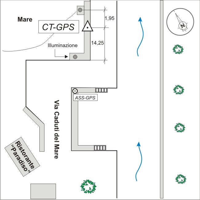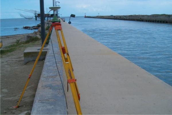 Centrino in acciaio inox del tipo GPS da livellazione infisso sul muretto in cemento armato del molo sinistro.