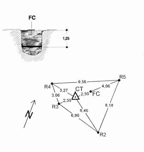 Segnale costituito da centrino di ghisa in blocco di calcestruzzo.