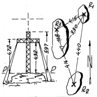| Materializzazione | Segnale sull'altura. Incisione su roccia con sovrastante croce in ferro. Asse geometrico della croce. Riferimenti:come da pianta. |