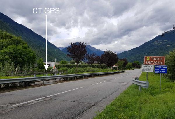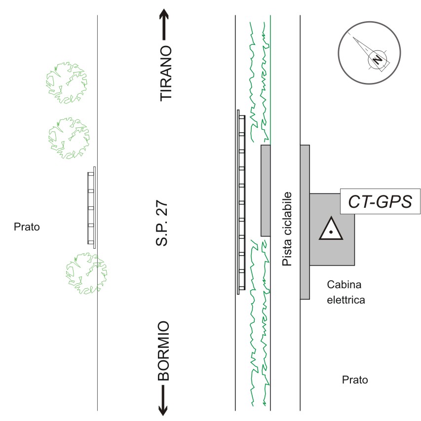 Centrino in acciaio inox del tipo "universale", infisso al centro della copertura in calcestruzzo della cabina elettrica che si trova fra gli abitati di Lovero e Tovo di Sant'Agata. La cabina elettrica è posta a destra, direzione Tirano.