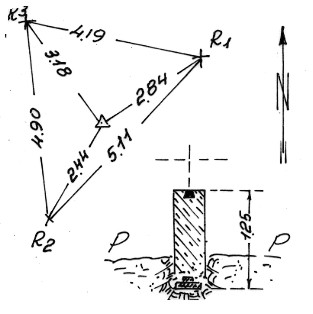 | Materializzazione | Segnale sulla vetta del pizzo che fa parte del contrafforte che separa l'alta valle del Mera dalla Val Codera. Piastra metallica con sovrastante pilastrino. Riferimenti:come da pianta. |